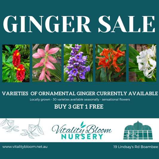 Vitality Bloom Nursery grows the largest variety of gingers on the Coffs Coast. Drop in and see what is currently available or browse our online store.